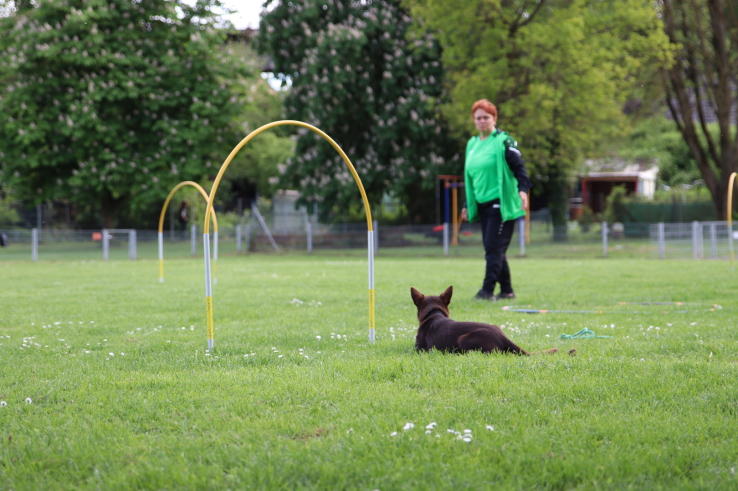 und Hörzeichen geschult, um den Hund aus der Ferne sicher durch den Parcours zu leiten. Der Fokus liegt auf Spaß, Verständigung und Teamarbeit – nicht auf Schnelligkeit.